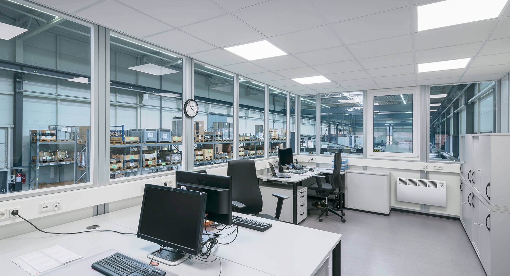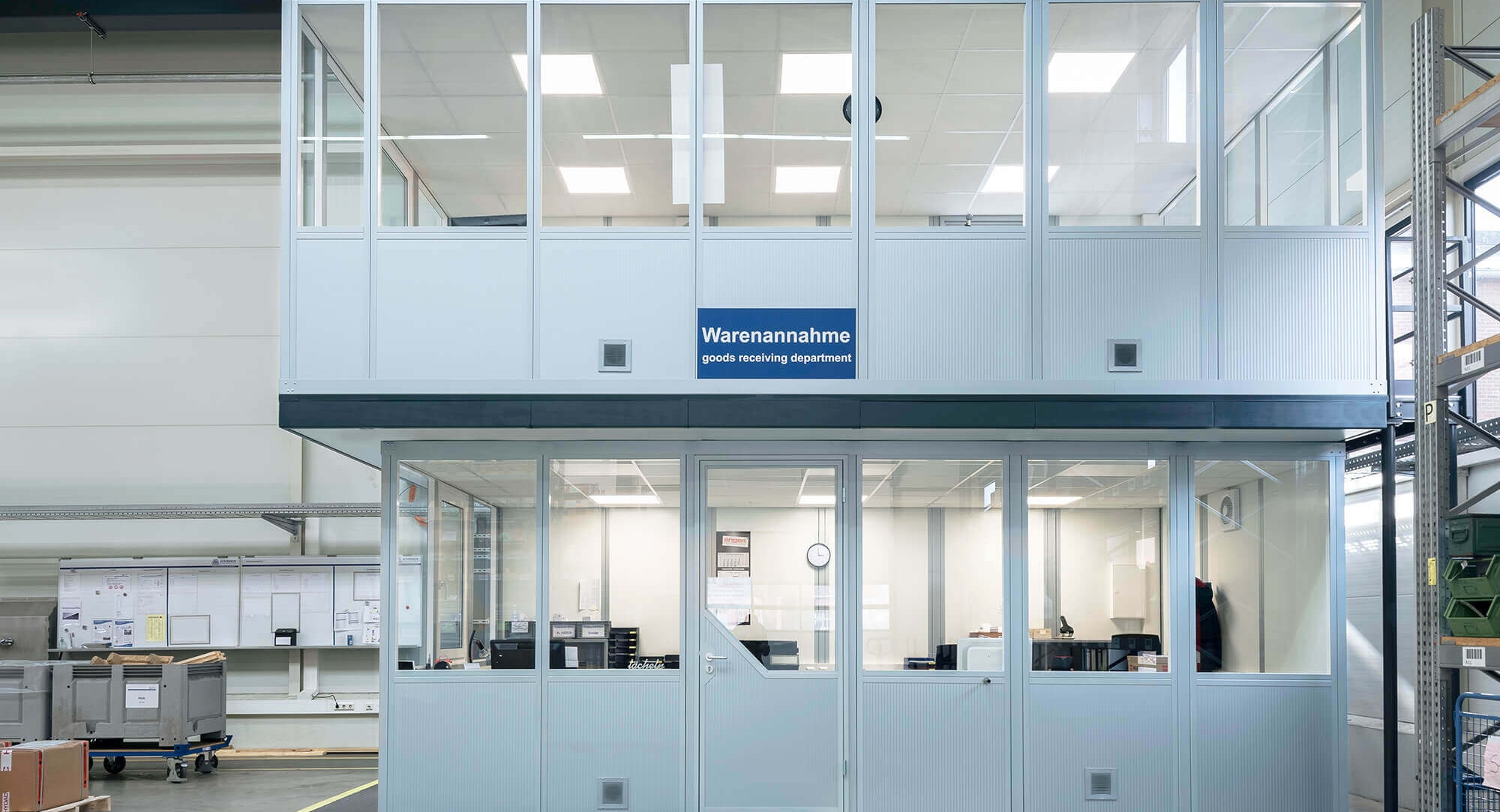 Achenbach ist ein weltweit tätiger Systemanbieter für Nicht-Eisen-Metall-Walzwerkanlagen und Folienschneidmaschinen für die NE-Metall- und die Veredlungsindustrie. Maschinen und Anlagen von Achenbach produzieren in rund 60 Ländern dieser Welt. Die Qualität ist weltweit anerkannt. Individuelle Kundenwünsche stehen für den Siegerländer genauso auf der Tagesordnung wie ein strenger Achenbach-Qualitätsstandard und der Einsatz modernster Technologien. Zur Schaffung von Büroräumlichkeiten in direkter Produktionsumgebung hat Achenbach ebenfalls auf eine individuelle, qualitativ hochwertige Lösung gesetzt. Mit Systemraum TRENDLINE von KLEUSBERG ist ein 2-geschossiger Halleneinbau entstanden, in dem moderne Arbeitsplätze für die Mitarbeiterinnen und Mitarbeiter der Warenannahme geschaffen wurden.